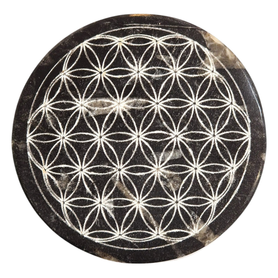 Place your chosen crystals on the key points of the sacred geometry design. Use with intention to focus energy, create harmony, and enhance spiritual practices such as meditation, manifestation or energy healing.