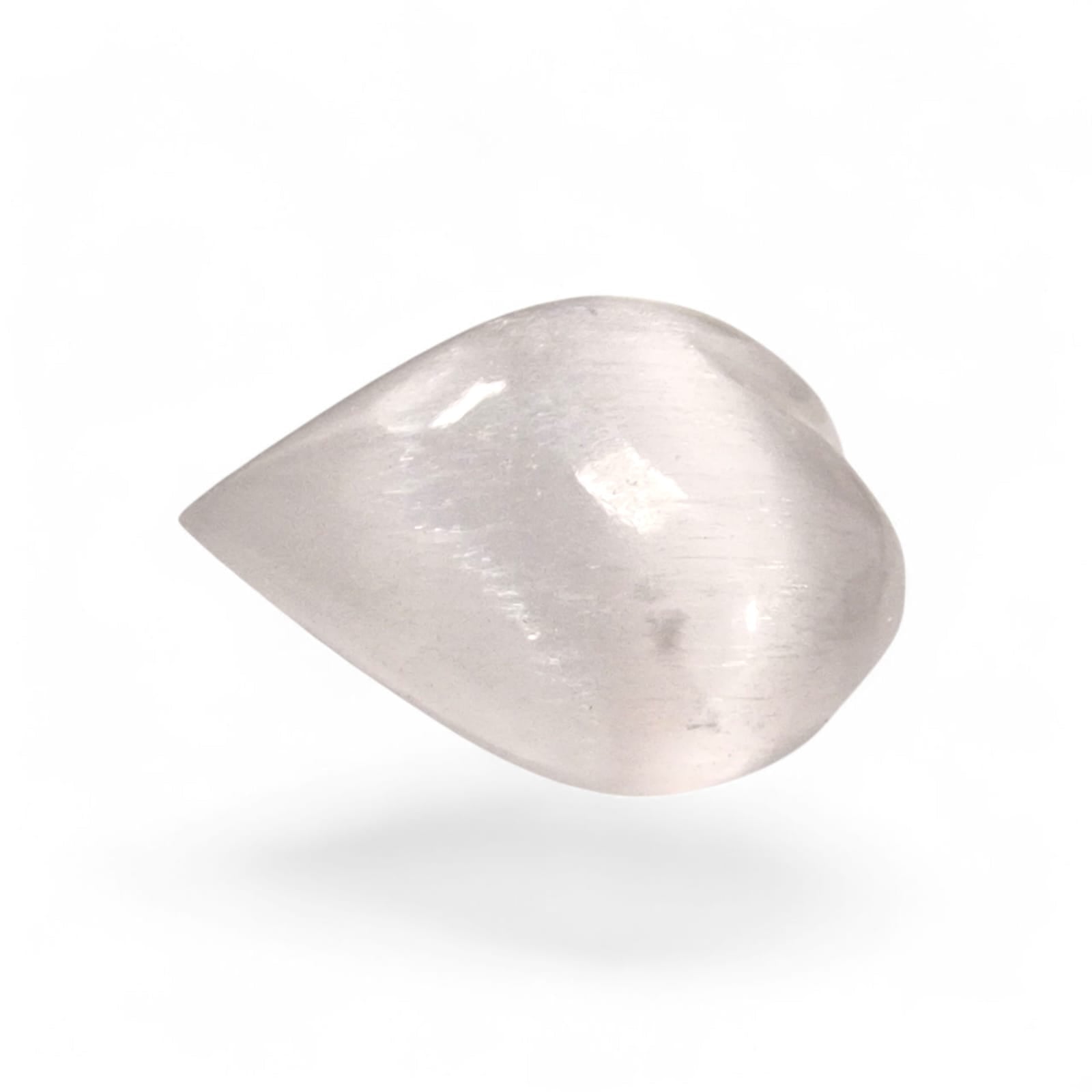 Selenite, a crystalline variety of gypsum (CaSO₄·2H₂O), is celebrated for its luminous white glow and natural striations that reflect light like moonbeams. With a Mohs hardness of 2, Selenite is easily carved into symbolic shapes. In the form of a heart, it embodies both purity and love, making it a meaningful piece for meditation, healing, or emotional support.